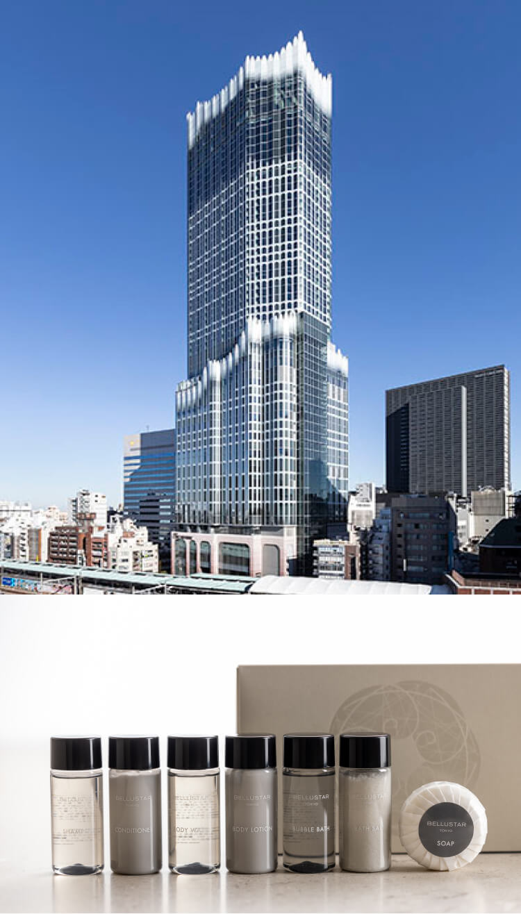 Aiming for both luxury and ecology, BELLUSTAR TOKYO's amenity bottles are operated under the Japan-originated system of complete recycling.