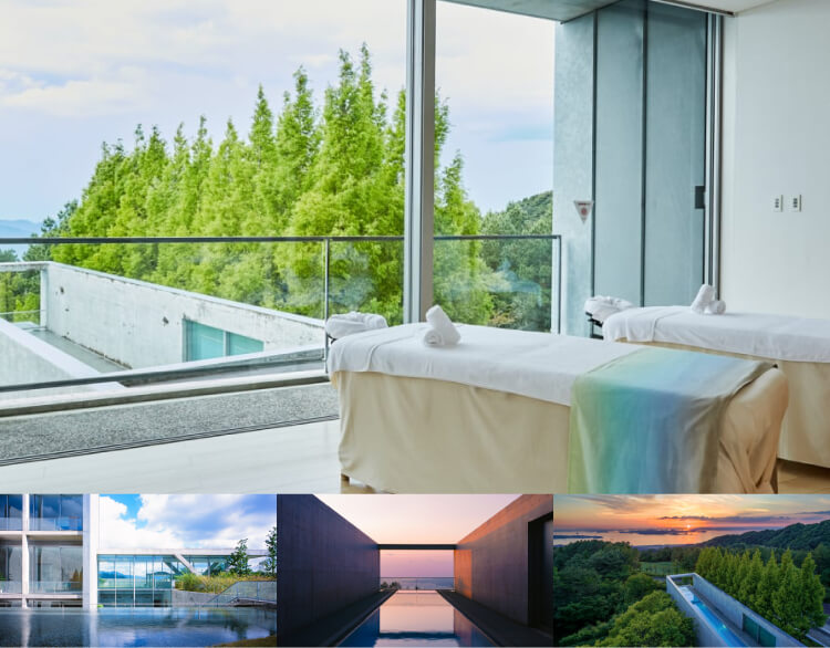 Only two spa suite rooms with a large view of the beautiful blue sea and islands of the Seto Inland Sea. Customize your treatment with our original products richly infused with the bounty of nature in the Seto Inland Sea, such as yuzu, mandarin oranges, and pomelos. You can experience a blissful all-hand treatment in a luxurious private space.